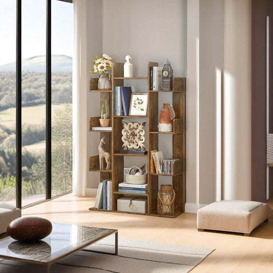 Tall 6-Tier Bookcase 210cm Vintage Brown & Black Freestanding Bookshelf for Living Room & Office