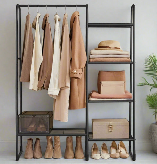 Clothes Rail Freestanding Garment Rack with 5 Storage Shelves Metal Frame – Black