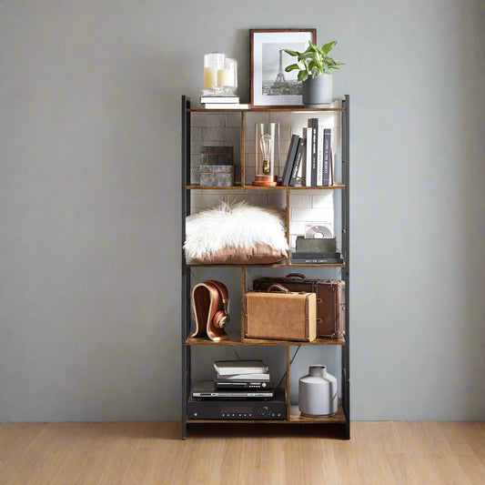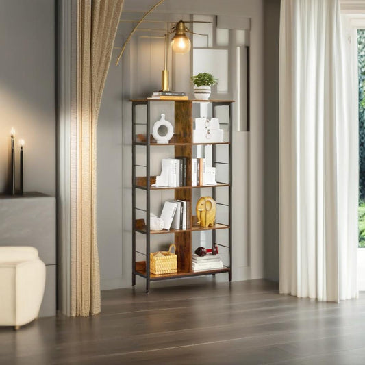 Bookshelf 5 Tier Rustic Brown Industrial Storage Shelf for Living Room Bedroom or Office