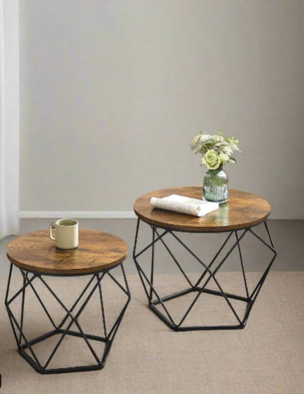 Set of 2 Industrial Coffee Tables - Geometric Design