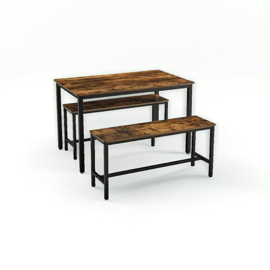 3-Piece Dining Table Set with 2 Benches – Industrial Style Space-Saving Design for 4 People