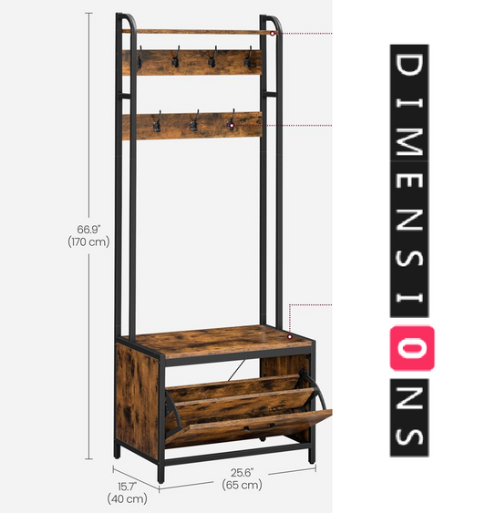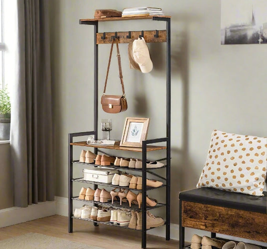 Entryway Coat Rack Stand with Shoe Storage Shelves – Industrial Hallway Organiser