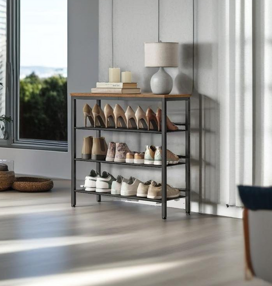 4-Tier Metal Shoe Rack with Adjustable Mesh Shelves
