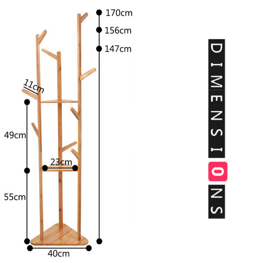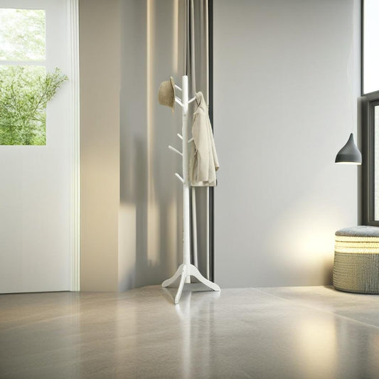 Wooden Coat Stand with 3 Height Options and 8 Hanging Hooks