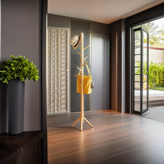 8 Hook Floor Standing Coat Stand - Natural