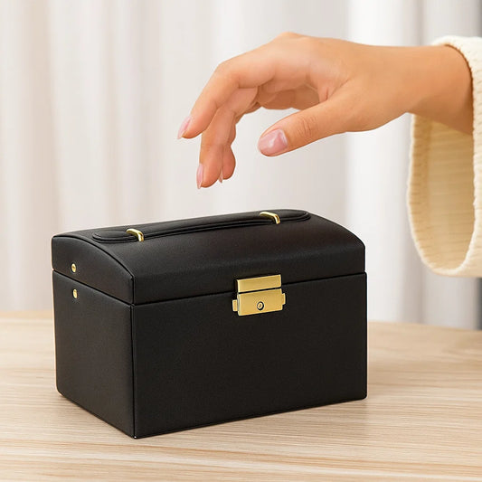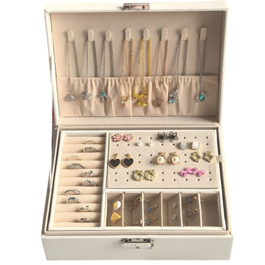 2 Layer Jewellery Box Organizer Lockable Rings Necklaces Jewellery Storage Case
