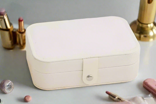 Portable Leather Jewelery Box Travel Case for Rings Necklaces Earrings Storage White
