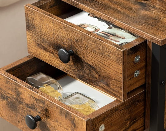 Slim Industrial Bedside Table with 2 Drawers
