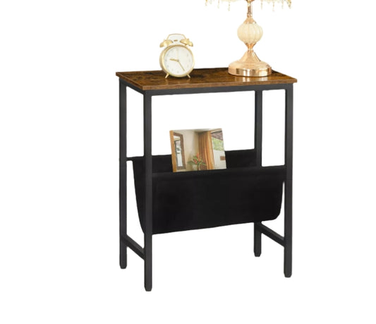 Rustic Brown Narrow Side Table – Small Bedside End Table with Metal Frame for Bedroom or Living Room