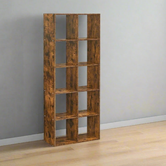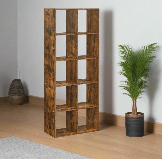 Maximize your storage and elevate your interior with this rustic brown 10-cube bookcase. Measuring 30 x 65.5 x 161.5 cm, this industrial-style shelving unit offers a clean, modern design with the warmth of wood grain, making it perfect for the living room, study, bedroom, or office.