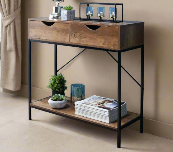 Console Table with 2 Drawers and Wooden Shelf