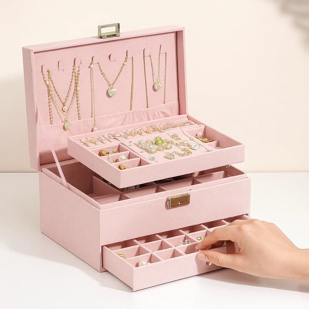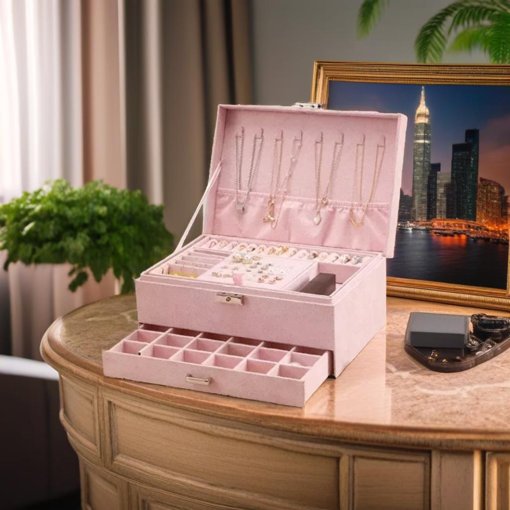3 Layer Pink Jewellery Box and Organizer - Pink