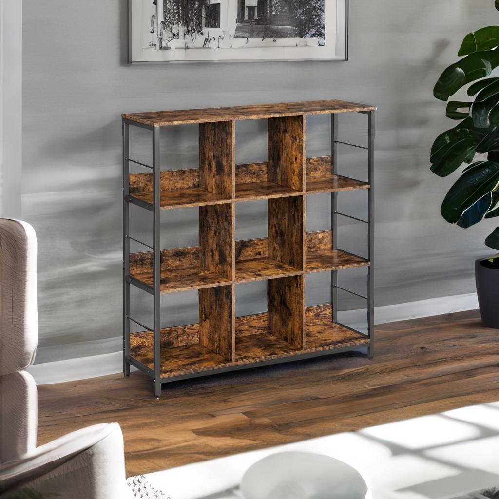 With its stylish blend of rustic brown and black tones, this bookshelf brings industrial charm to any room, elevating its aesthetic from ordinary to captivating.