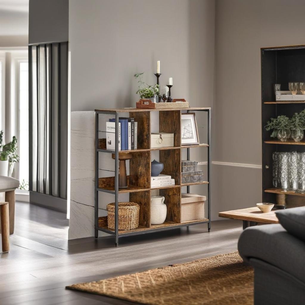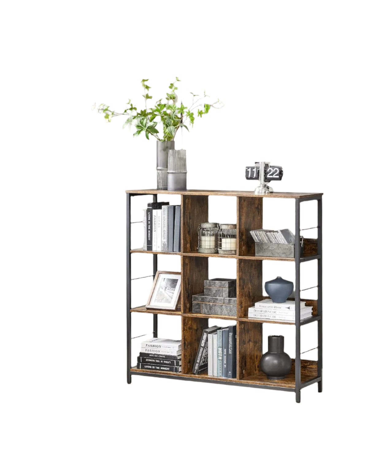 Designed with 9 compartments, this bookcase offers ample versatility to suit various storage needs. Whether in the living room for plants and decor, the study for books, or the kitchen for jars and bottles, it adapts seamlessly to different spaces.