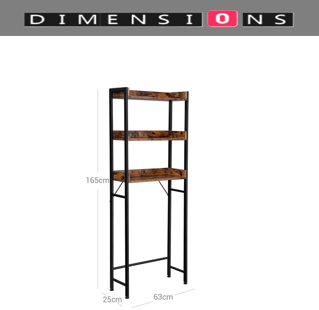 3-Tier Over-The-Toilet Storage Shelf – Rustic Brown| Industrial Bathroom Organizer