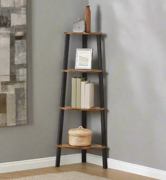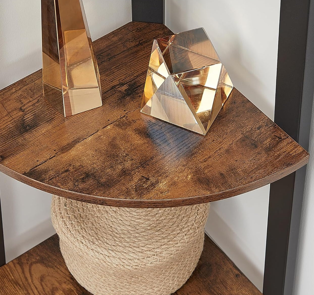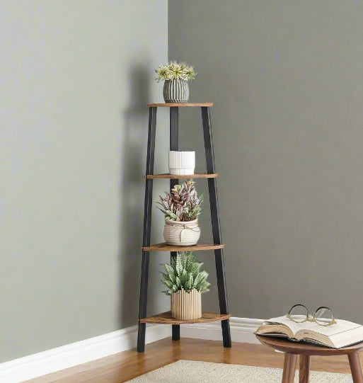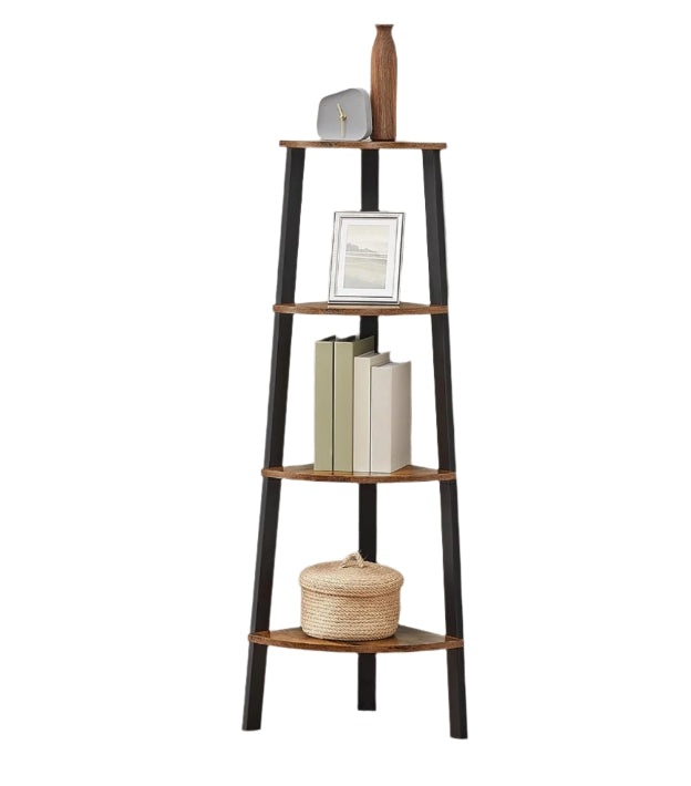 4 Tier Industrial Style Corner Shelf Shelf - Rustic Brown