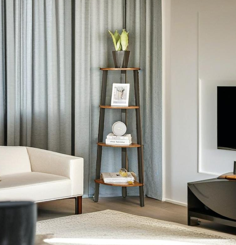 The 4-tier fan-shaped shelves maximize corner space, offering ample room to store and display a variety of items. Whether it's books, decor pieces, or collectibles, this shelf is designed to make the most of your space.