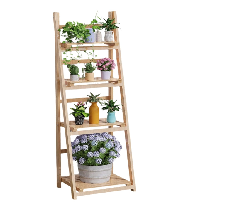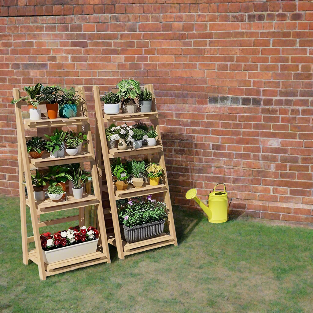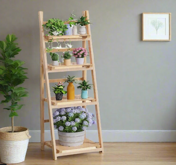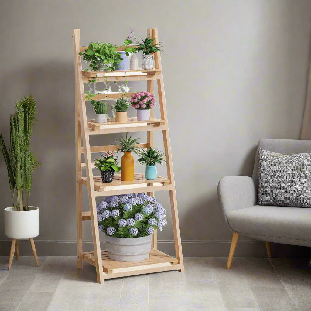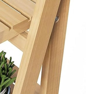 4-Tier Foldable Wooden Plant Stand – Ladder Shelf Display Rack - Natural Colour