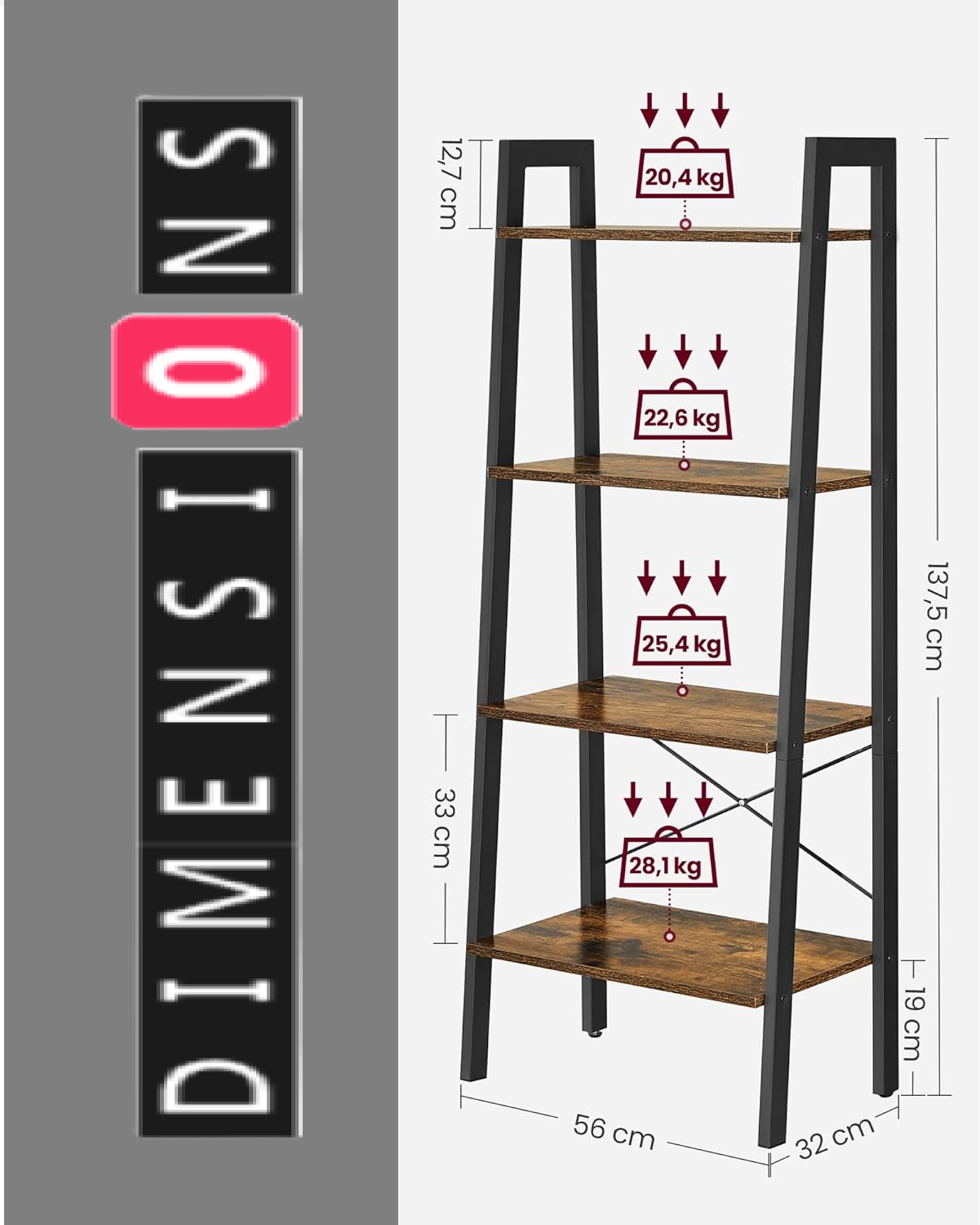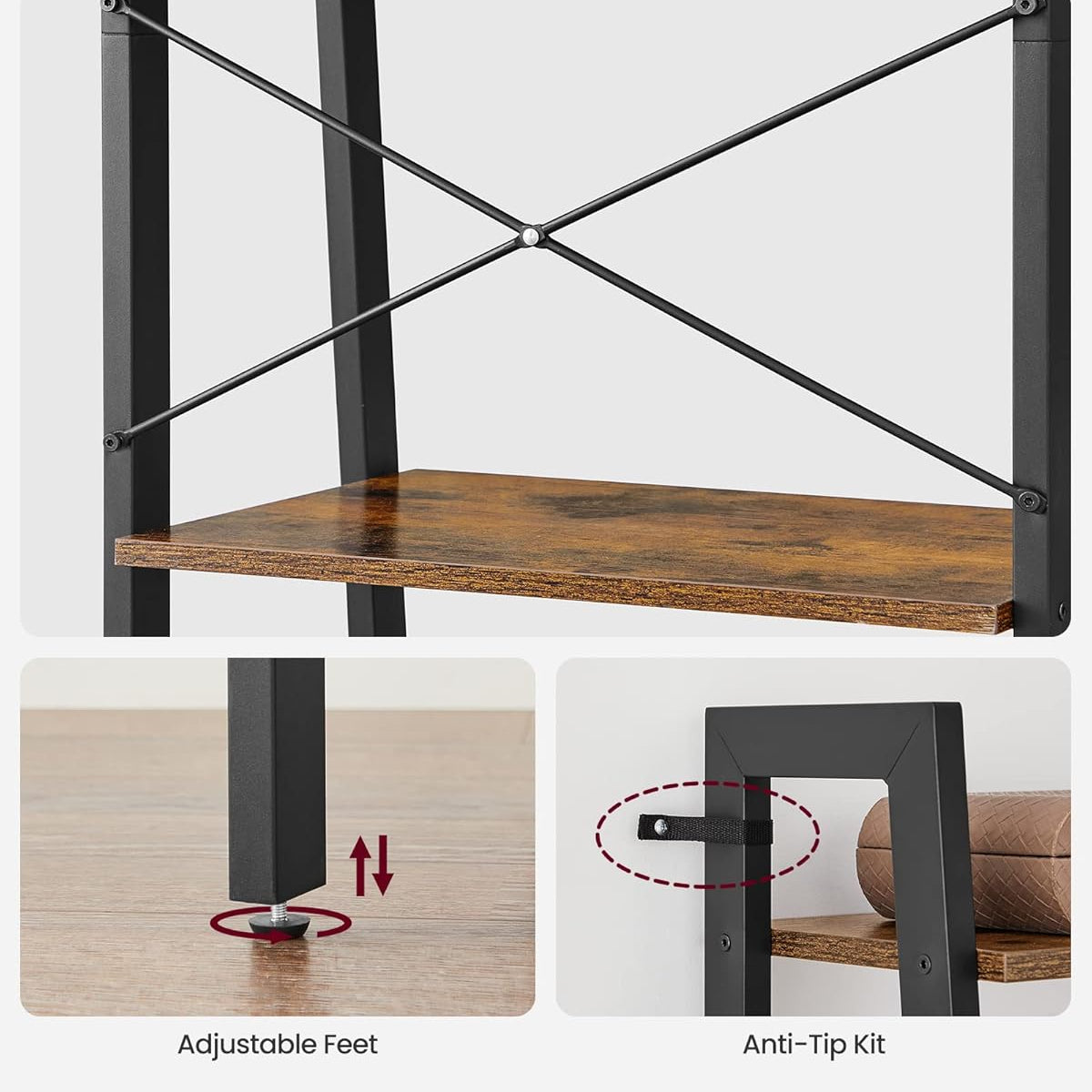 4-Tier Ladder Shelf - Rustic Bookshelf