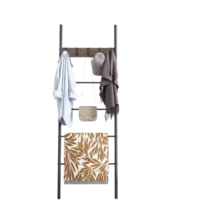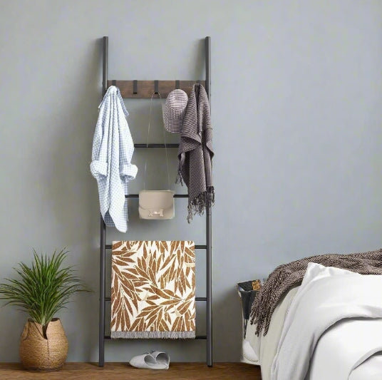 This versatile 5 tier blanket ladder is the perfect solution for organizing and displaying blankets, towels, scarves, and more. It also comes with 5 removable hooks, allowing you to hang additional items like hats, bags, or plants, making it a multifunctional piece for any room.