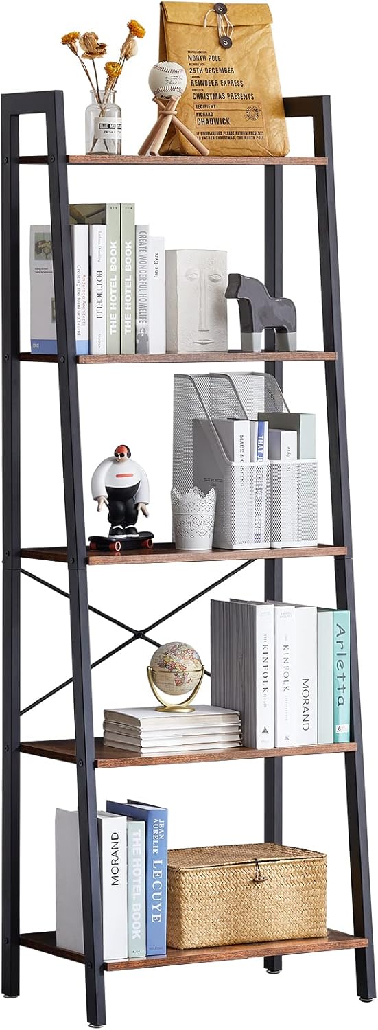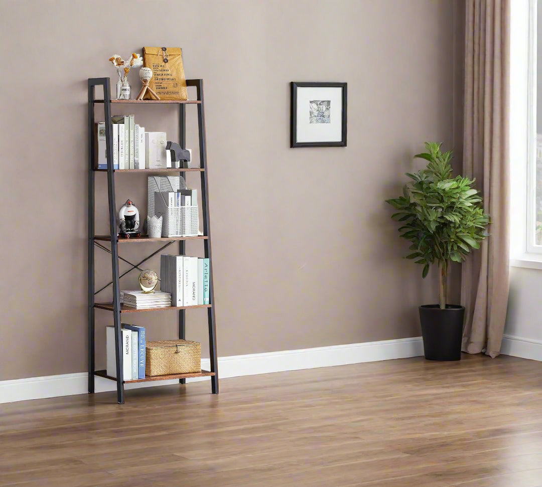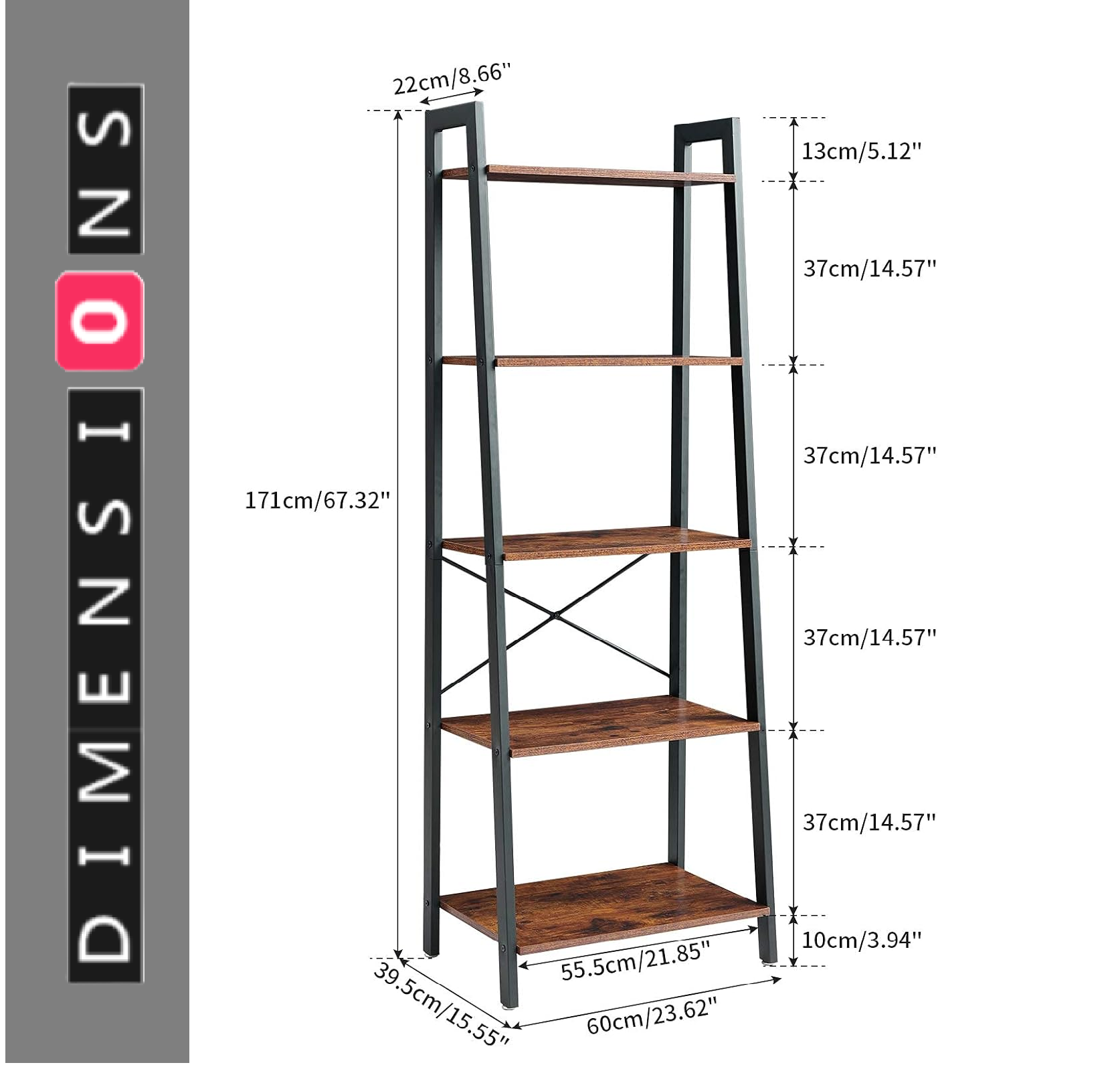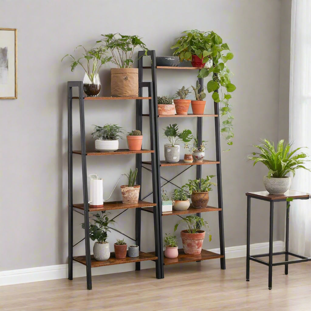 5-Tier Ladder Shelf - Industrial Bookshelf and Plant Stand