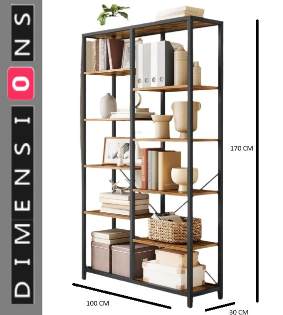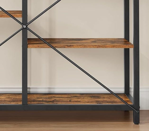 Maximise your storage and display options with this 5-tier industrial-style bookcase. Featuring 10 open compartments of varying heights (24.5 cm, 30.5 cm, and 38 cm), it’s perfect for organising books, decor, kitchenware, and more. Its rustic brown particleboard shelves paired with a black steel frame bring a warm, modern touch to any living room, office, or study.