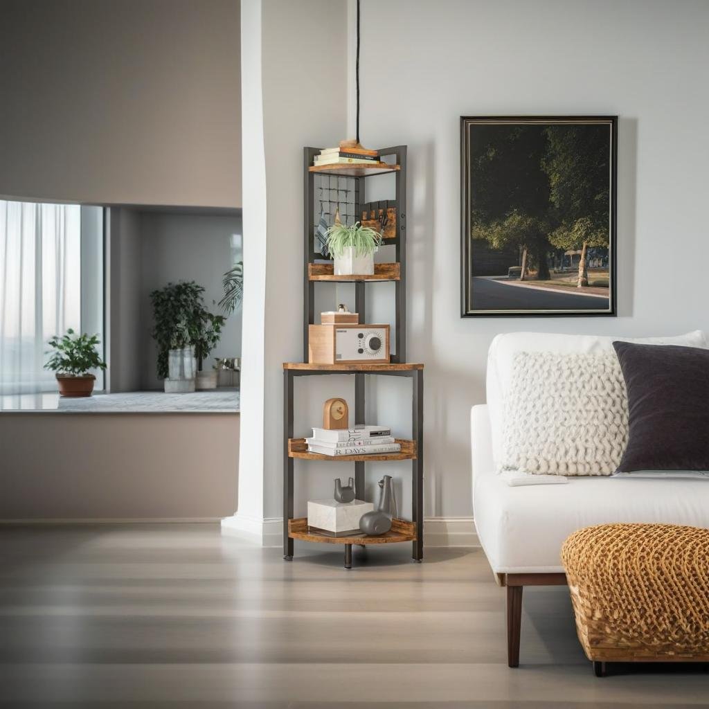 5-Tier Rustic Corner Shelf - Industrial Ladder Bookcase and Plant Stand