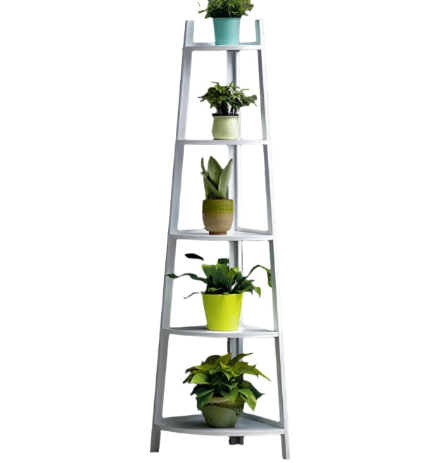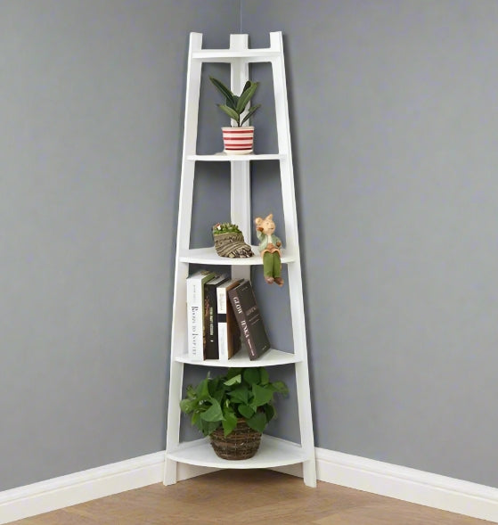 5-Tier White Corner Ladder Shelf – Modern Display Stand for Plants & Home Decor