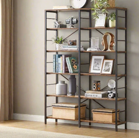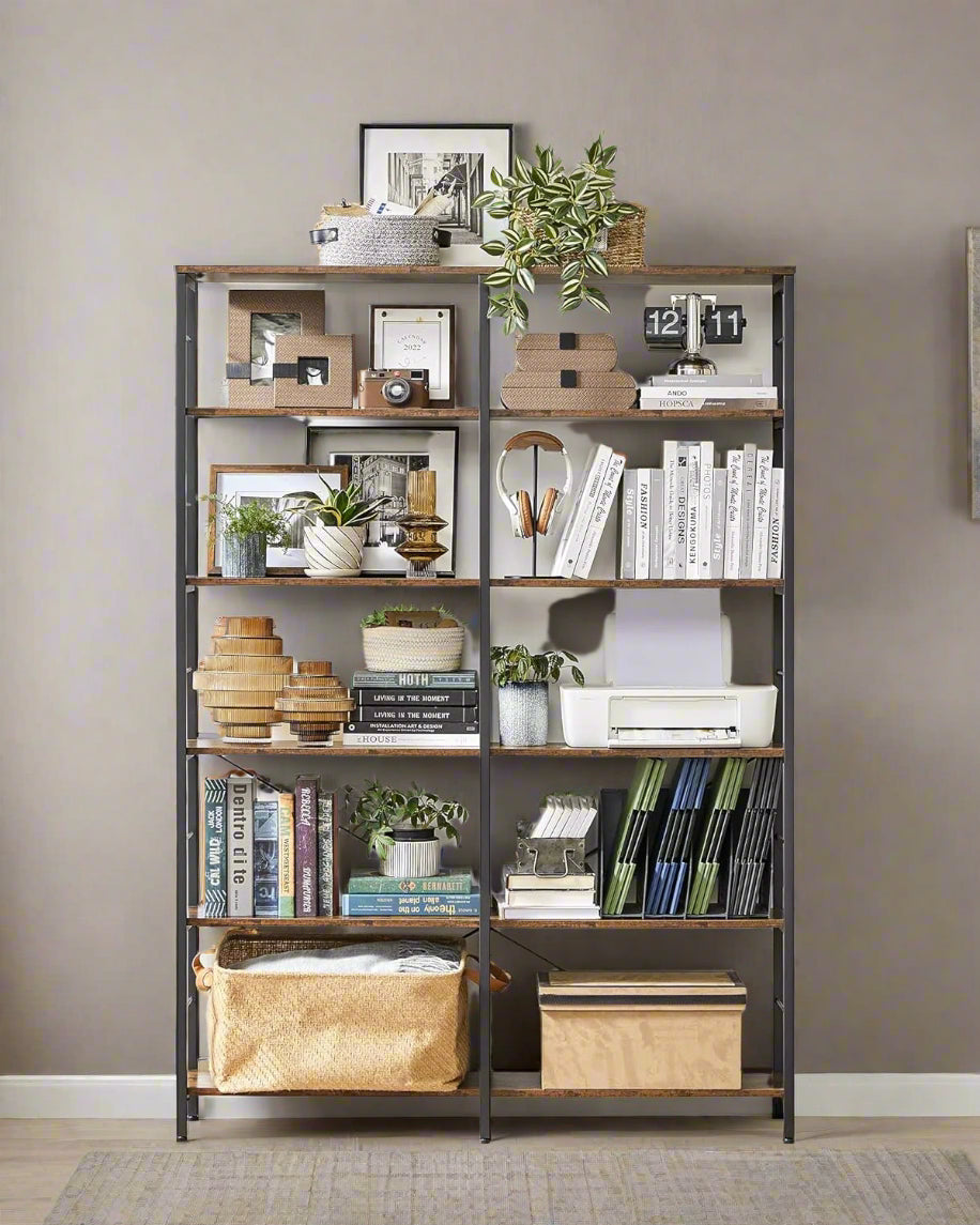 Add bold industrial charm and serious storage to your space with this 6-tier bookshelf. With a generous 120 cm width and 170 cm height, this tall shelving unit is perfect for organising books, décor, kitchenware, or even plants. Its versatile open-back design also makes it ideal as a stylish room divider in open-plan living areas.