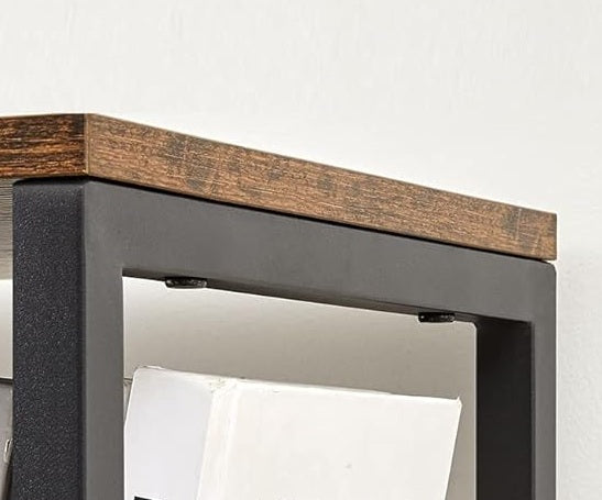 Crafted from durable chipboard and a reinforced steel frame, each shelf supports up to 45 kg—perfect for heavier items. An X-brace adds strength and character, while side rails on each tier help prevent items from slipping off. Whether placed in the living room, kitchen, study, or balcony, this shelf blends utility with striking industrial aesthetics.