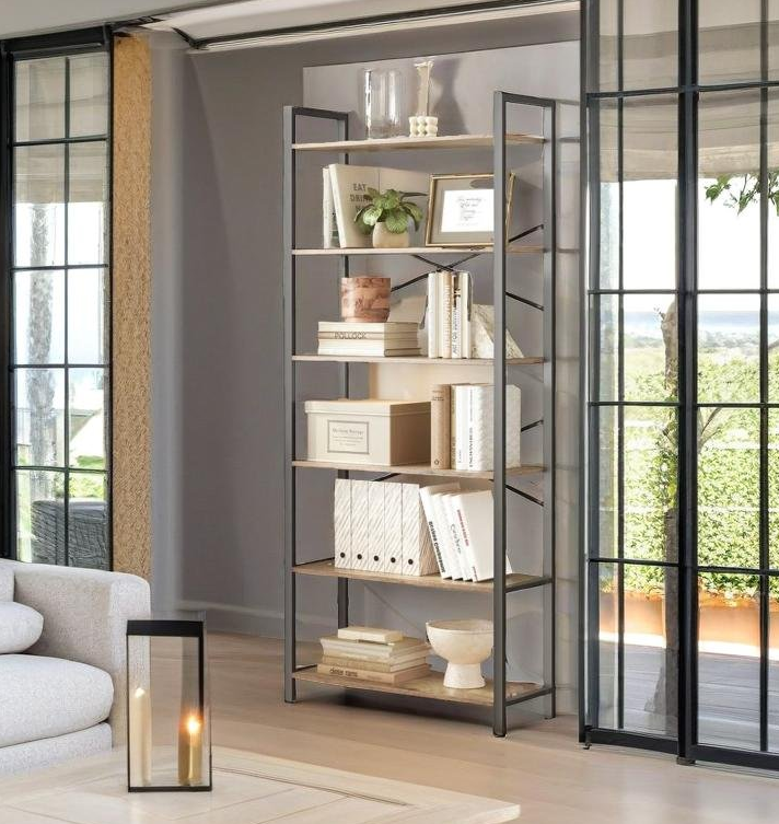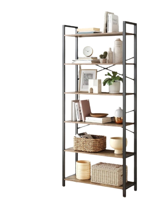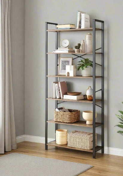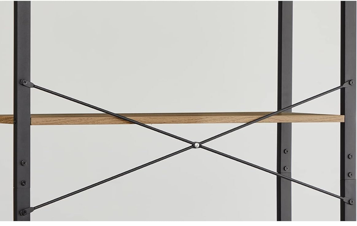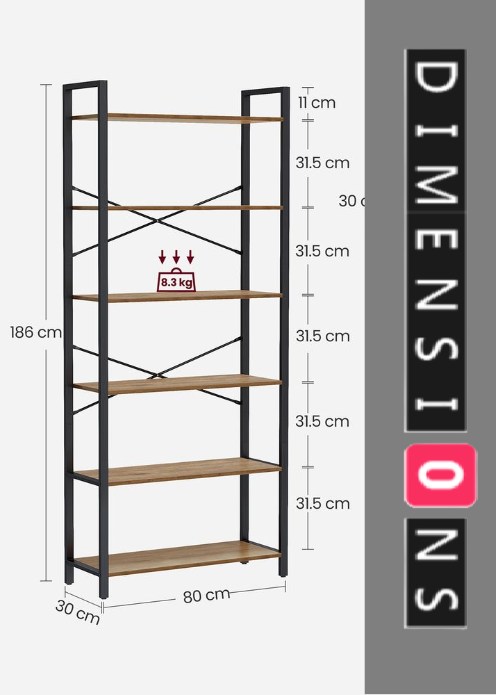 Measuring 30 x 80 x 186 cm, its tall, space-saving silhouette is perfect for small living rooms, bedrooms, studies, or kitchens. Crafted from sturdy steel and quality particleboard, this bookcase supports up to 90 kg with reliable strength. The X-brace back design enhances stability, adjustable feet compensate for uneven floors, and the included anti-tip kit ensures safety in your home. With its minimalist wheat brown and ink black finish, this shelving unit brings modern industrial style and practical storage to any room.