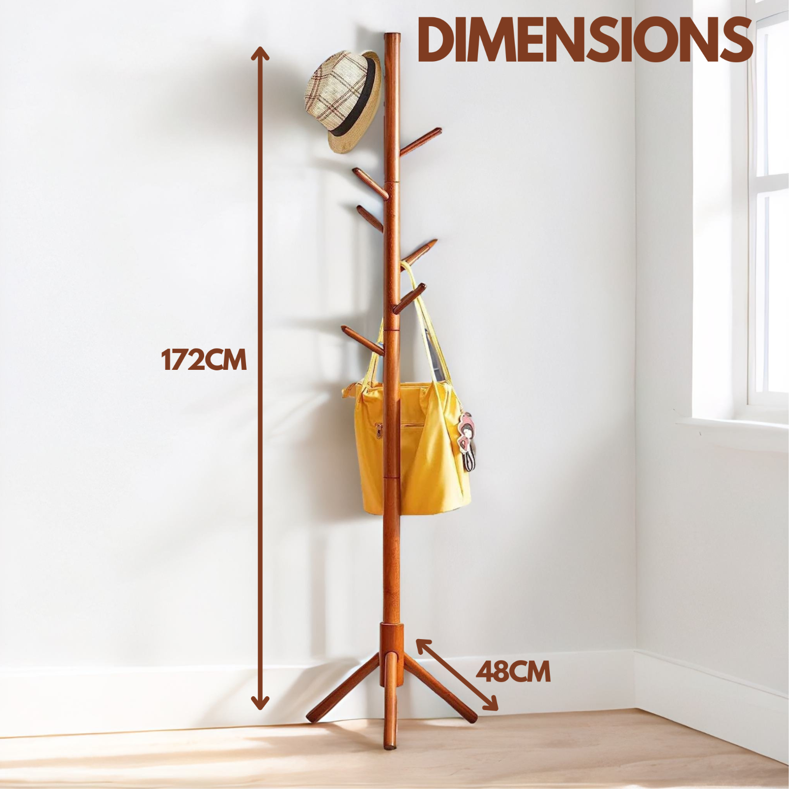 Equipped with 8 multipurpose hooks, each supporting up to 5 kg, its ideal for organizing coats, hats, handbags, and more. The adjustable height feature makes it suitable for both kids and adults, and the tool-free setup with built-in screws ensures easy assembly. Rubber wood hooks, reinforced with metal screw-holes, provide added strength and longevity. The classic tree-inspired design complements various decor styles, whether in the living room, bedroom, hallway, or office, adding a modern touch to your space, making it a versatile addition to any room.