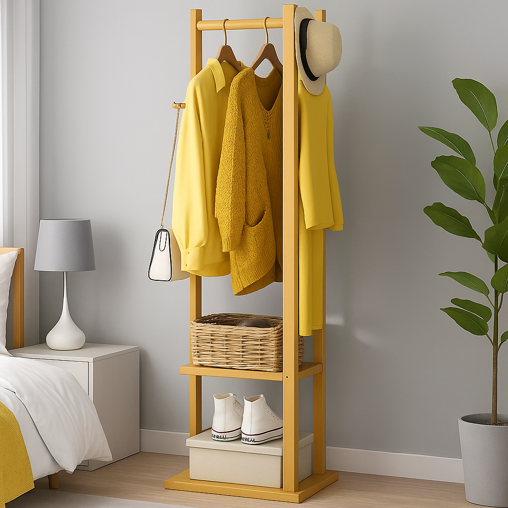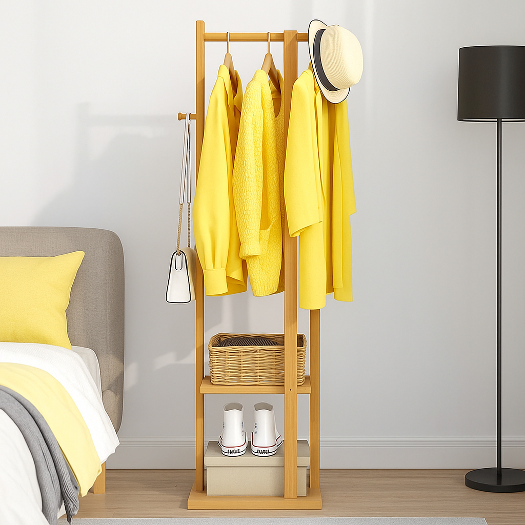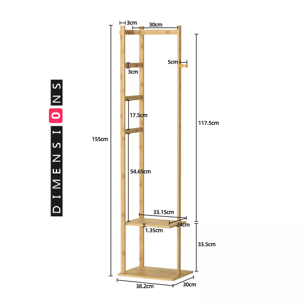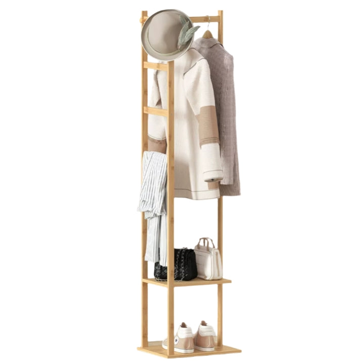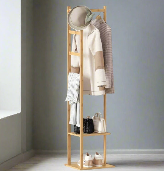 Bamboo Coat Stand with Garment Shelf and Hanging Rail