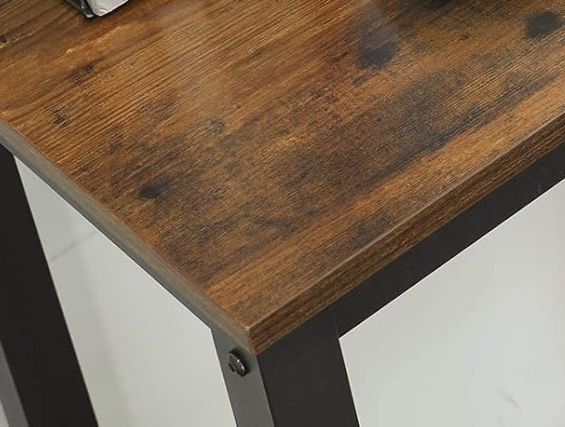 Crafted with a vintage brown particleboard top and supported by a robust black steel frame (with 25x50 mm reinforcement bars), it delivers both character and strength—supporting up to 100 kg.