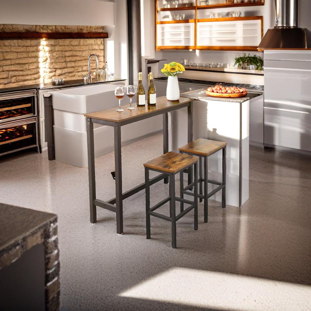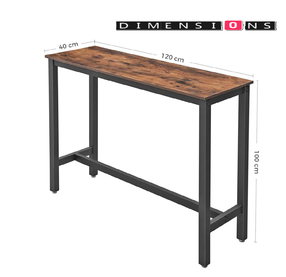 Bar Table Desk, Industrial Style, 120x40x100 cm, Vintage Brown and Black, Sturdy Metal Frame