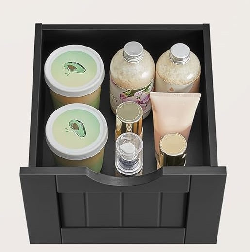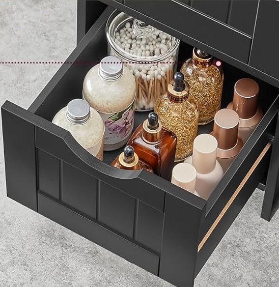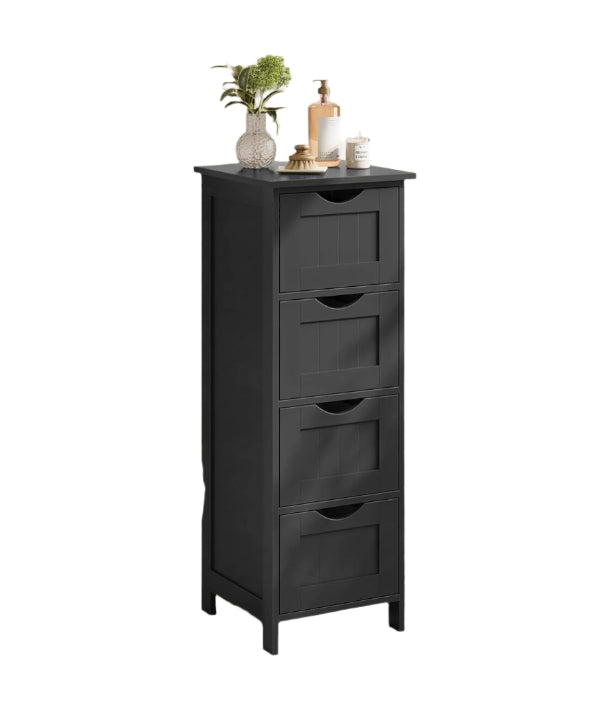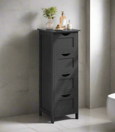 Black Bathroom Floor Storage Cabinet – Freestanding Unit with 4 Drawers