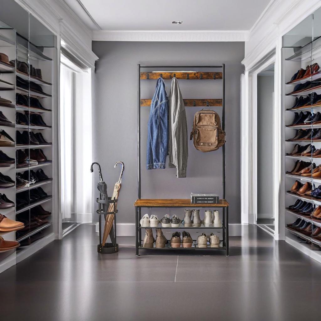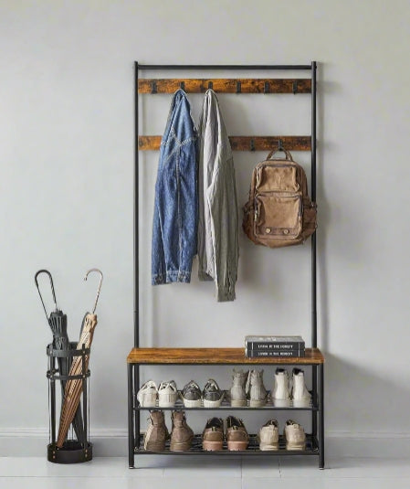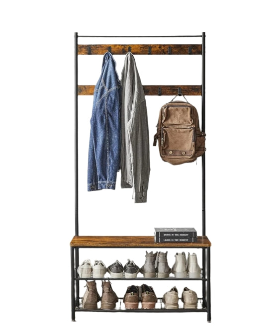 Coat Rack with Shoe Storage Bench with Steel Frame
