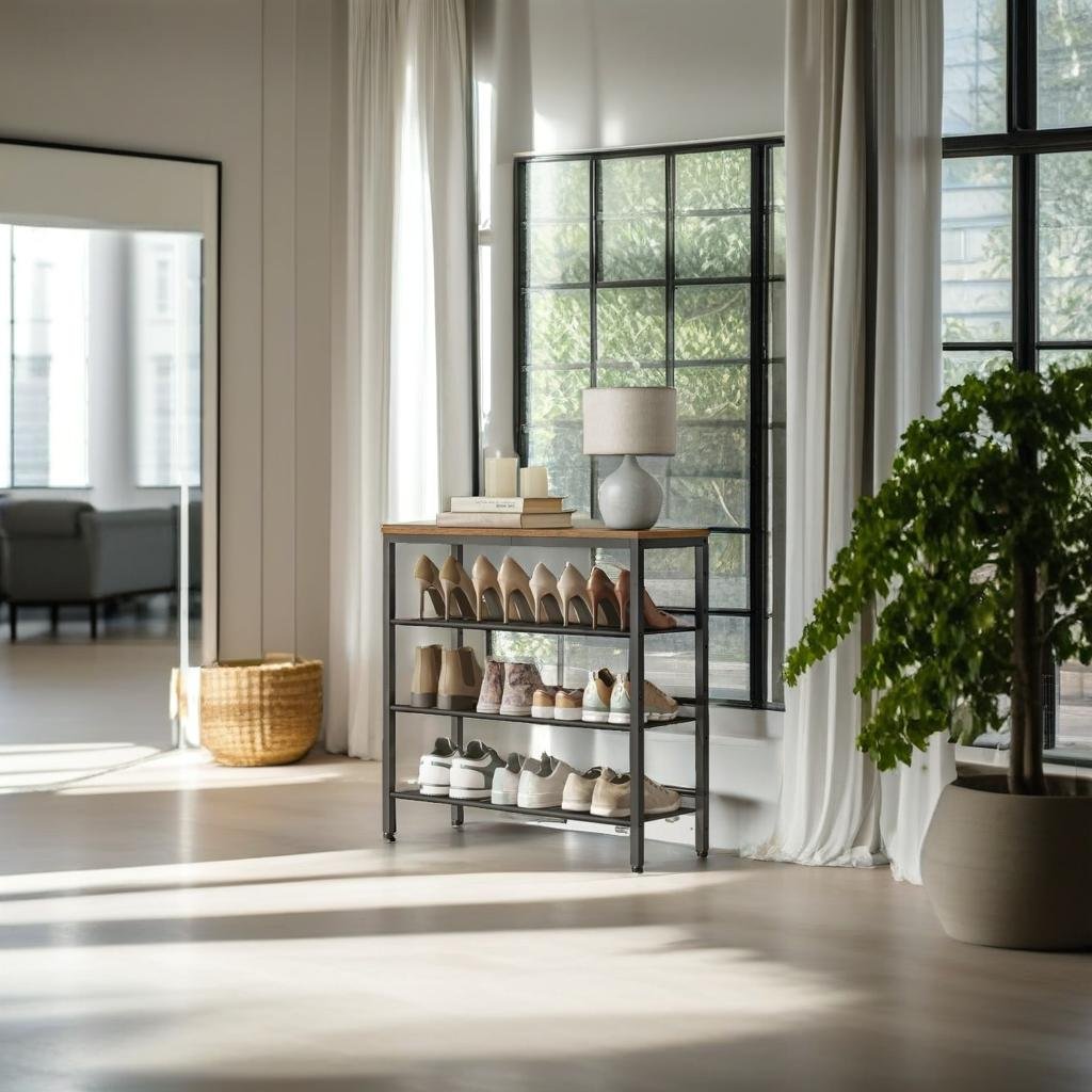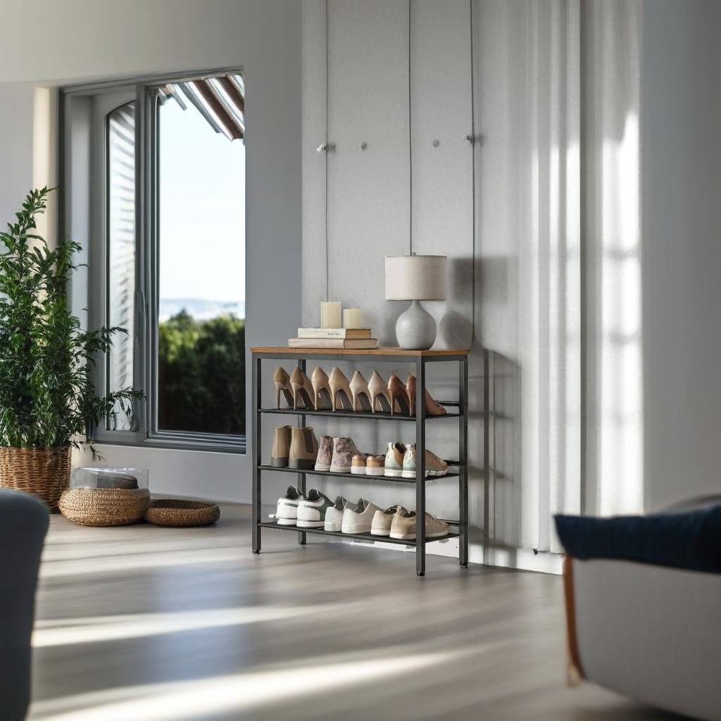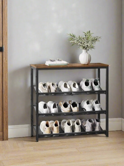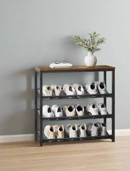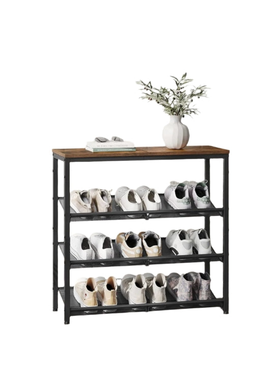 4-Tier Metal Shoe Rack with Adjustable Mesh Shelves
