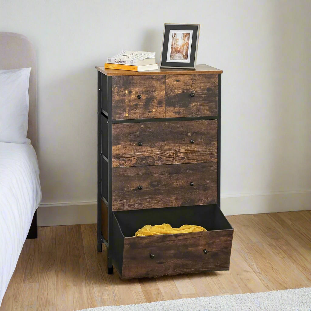 Chest of Drawers – 5-Drawer Fabric Storage Organizer Unit with Wood Handles