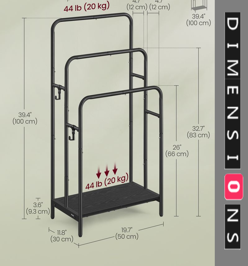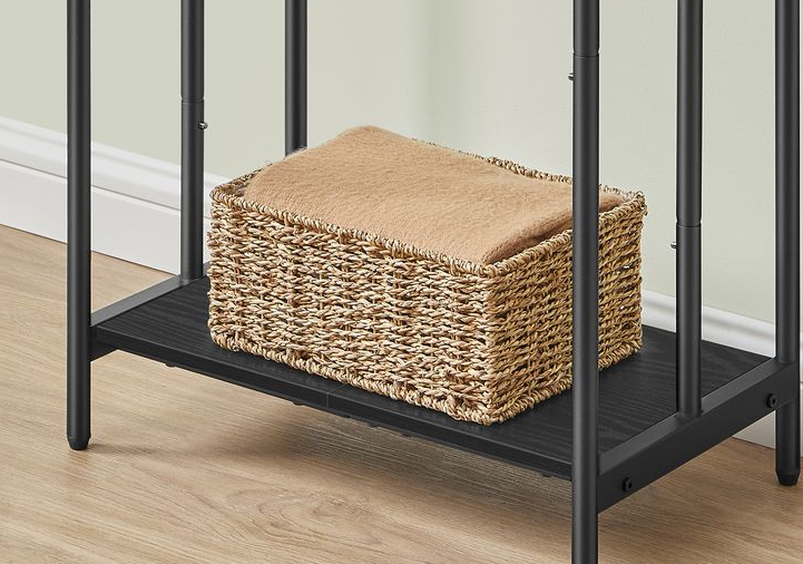 -Key Feature: 3-tier design with 2 hooks and bottom storage shelf for versatile organization