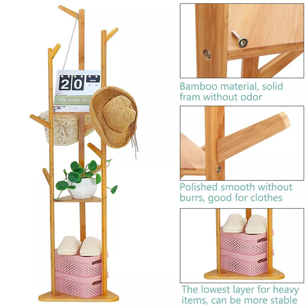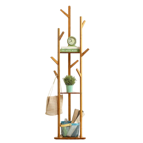 Freestanding coat rack made of natural bamboo for durability and eco-conscious style