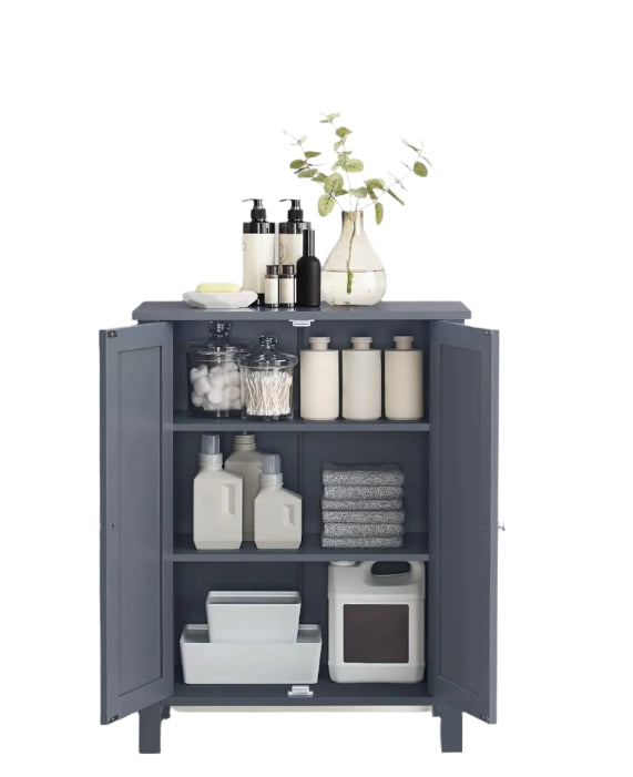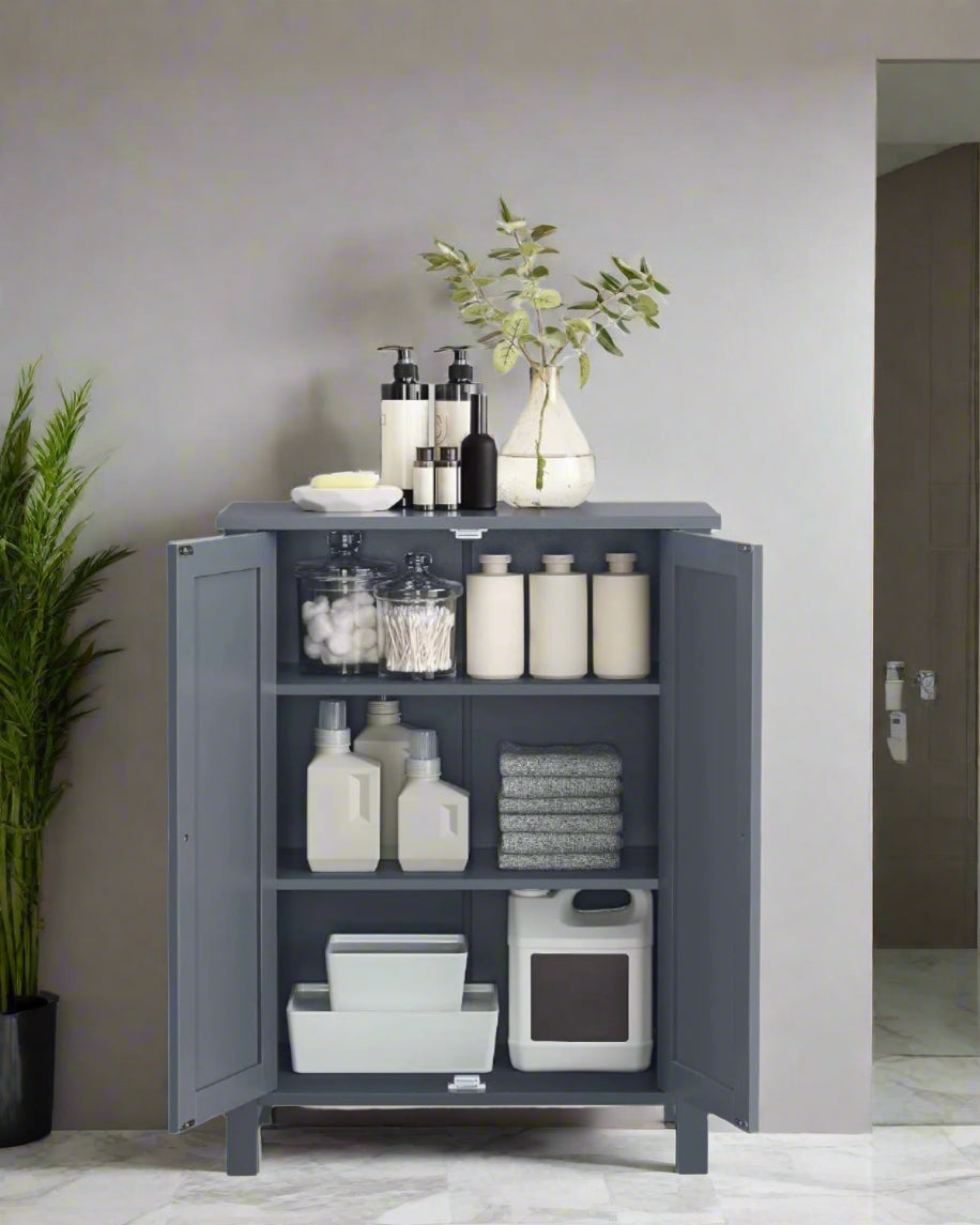 Grey Bathroom Storage Cabinet – Freestanding Cupboard with 2 Adjustable Shelves