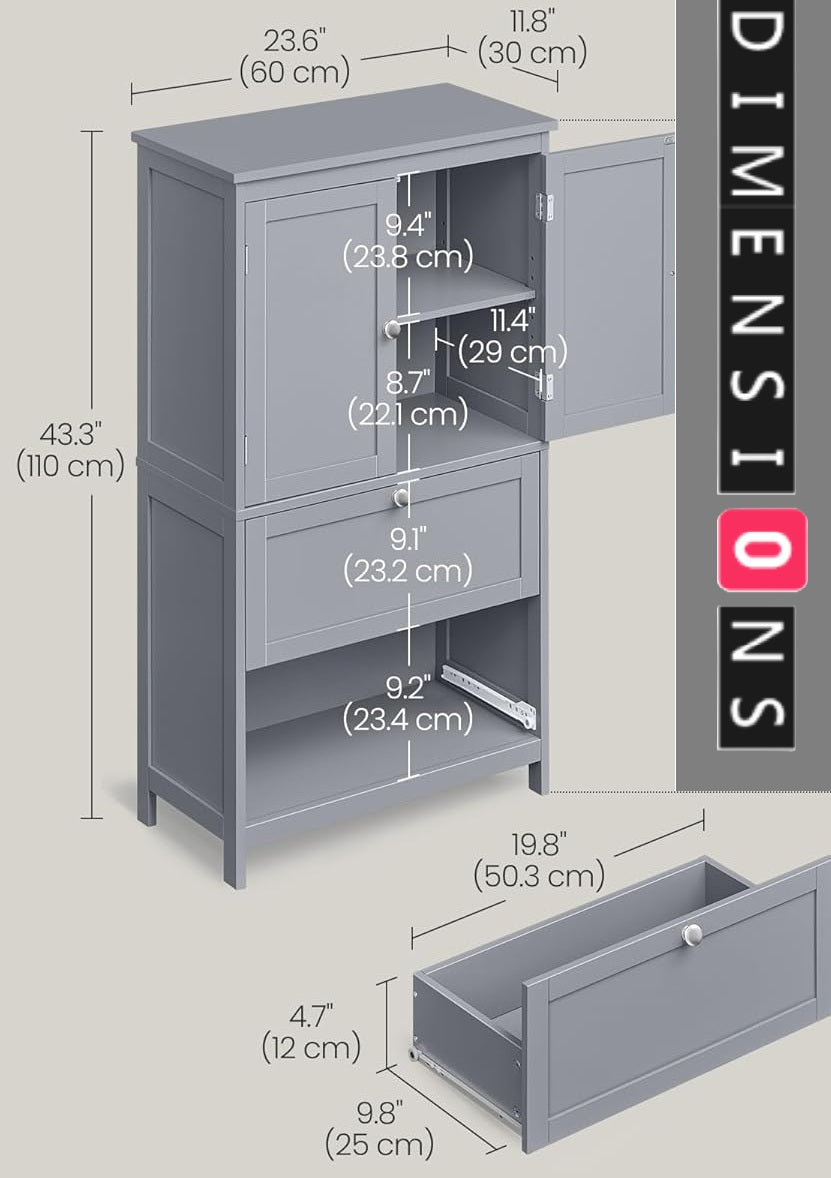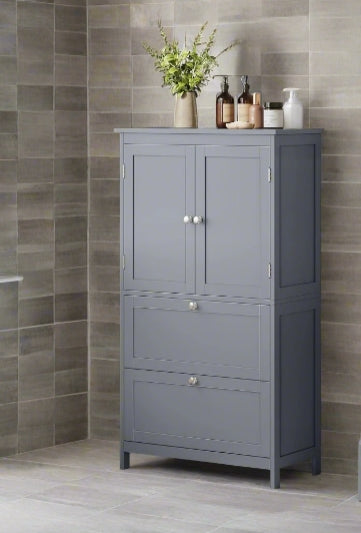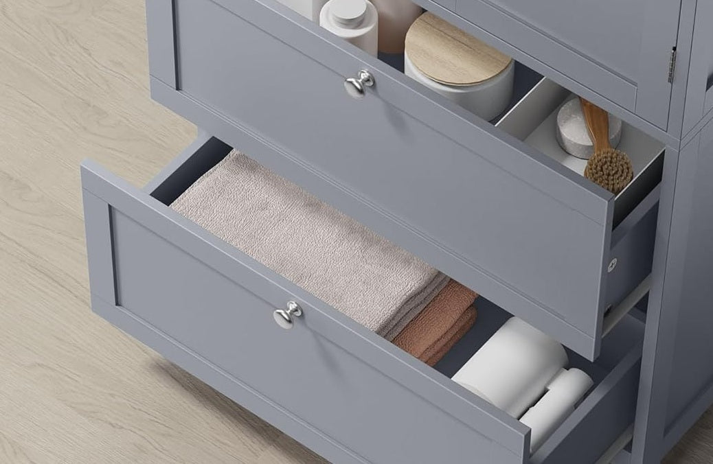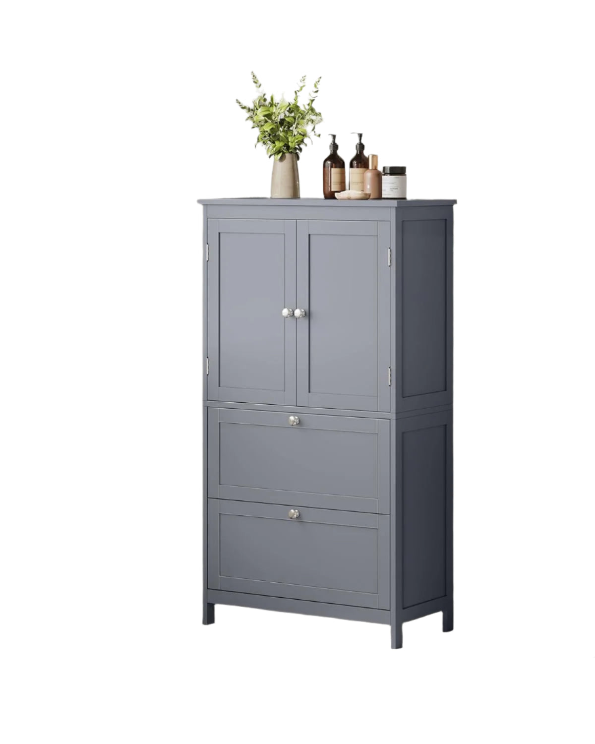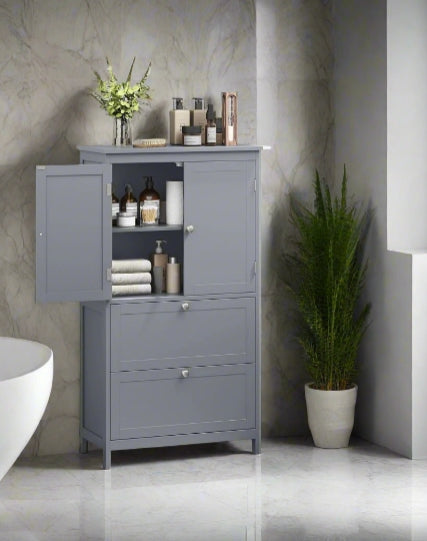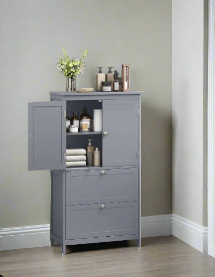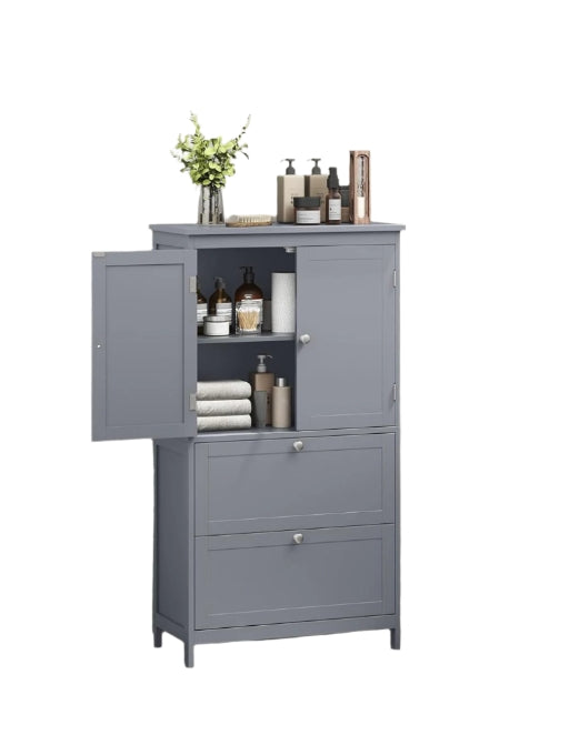 Grey Bathroom Storage Cabinet Kitchen Cupboard with 2 Drawers, 2 Doors & Adjustable Shelf