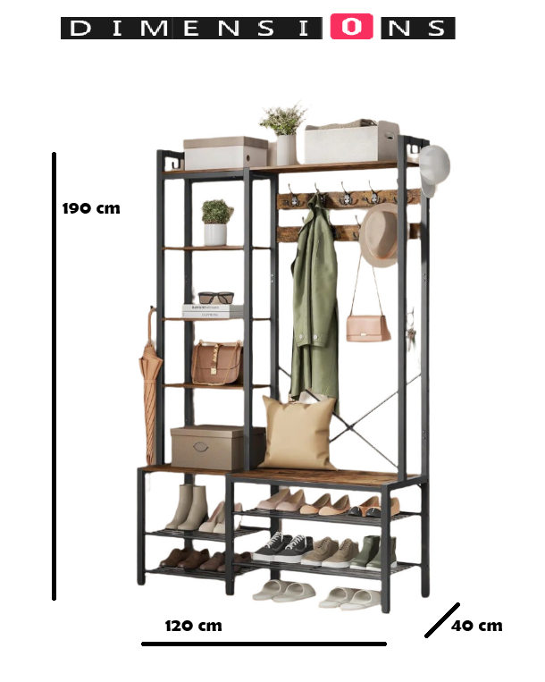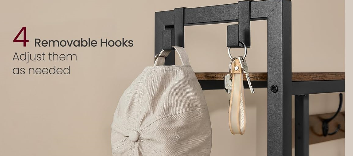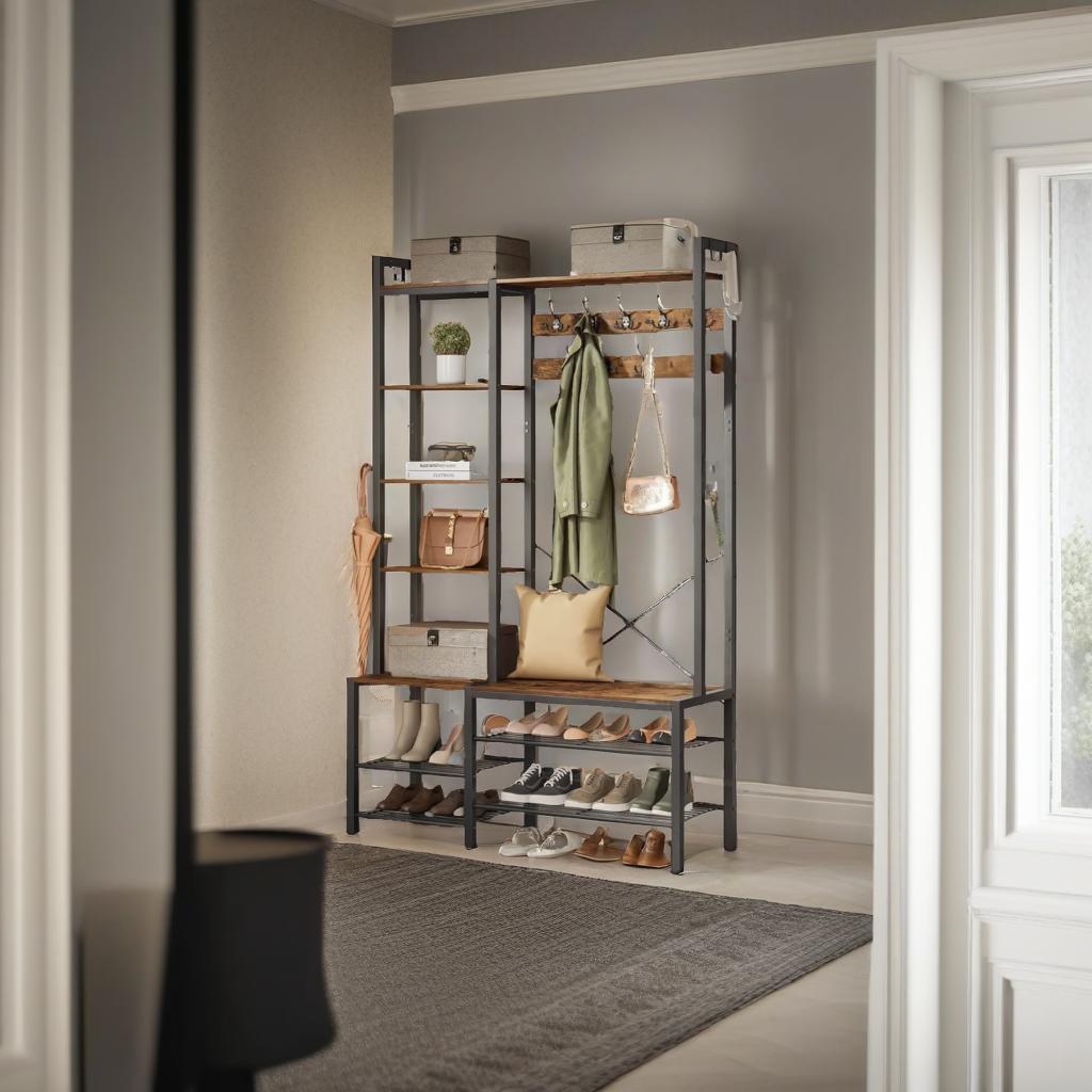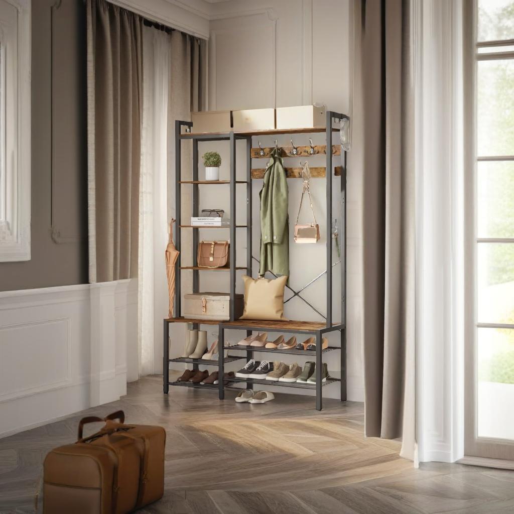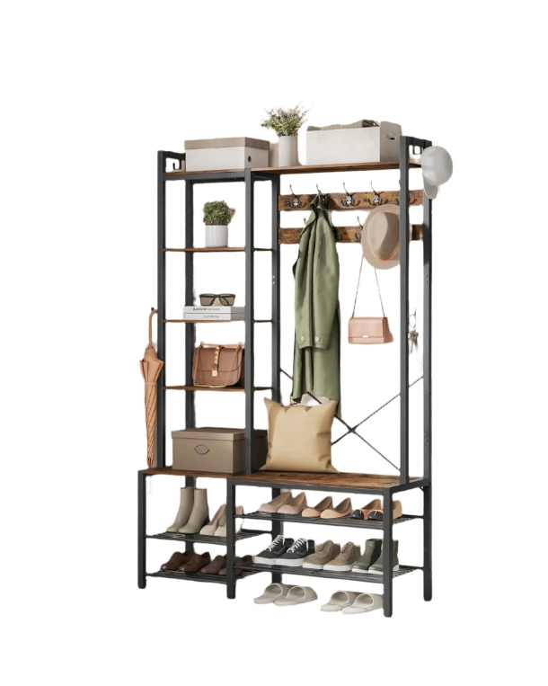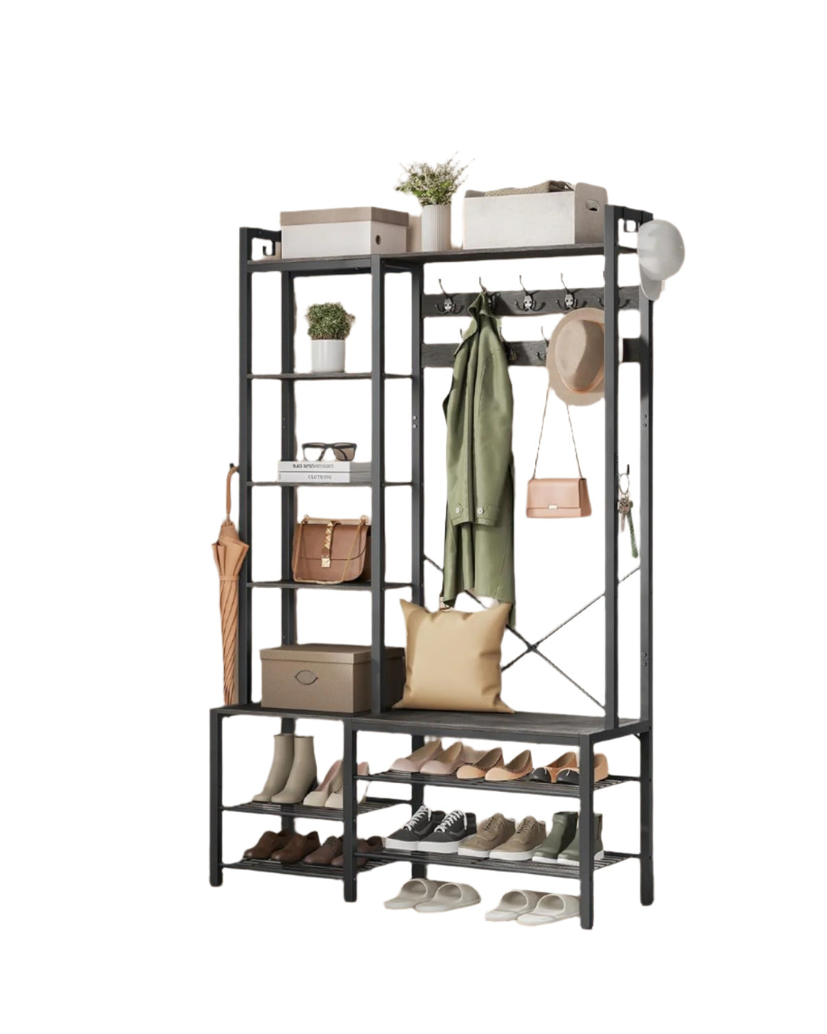Key Feature: 4-in-1 design with coat hooks shoe bench shelves and storage rack in one unit