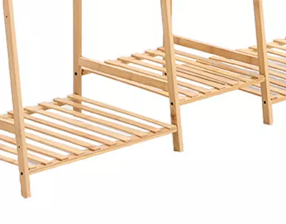 Heavy Duty Bamboo Clothes Rail Rack with Corner Storage Shelves – Natural