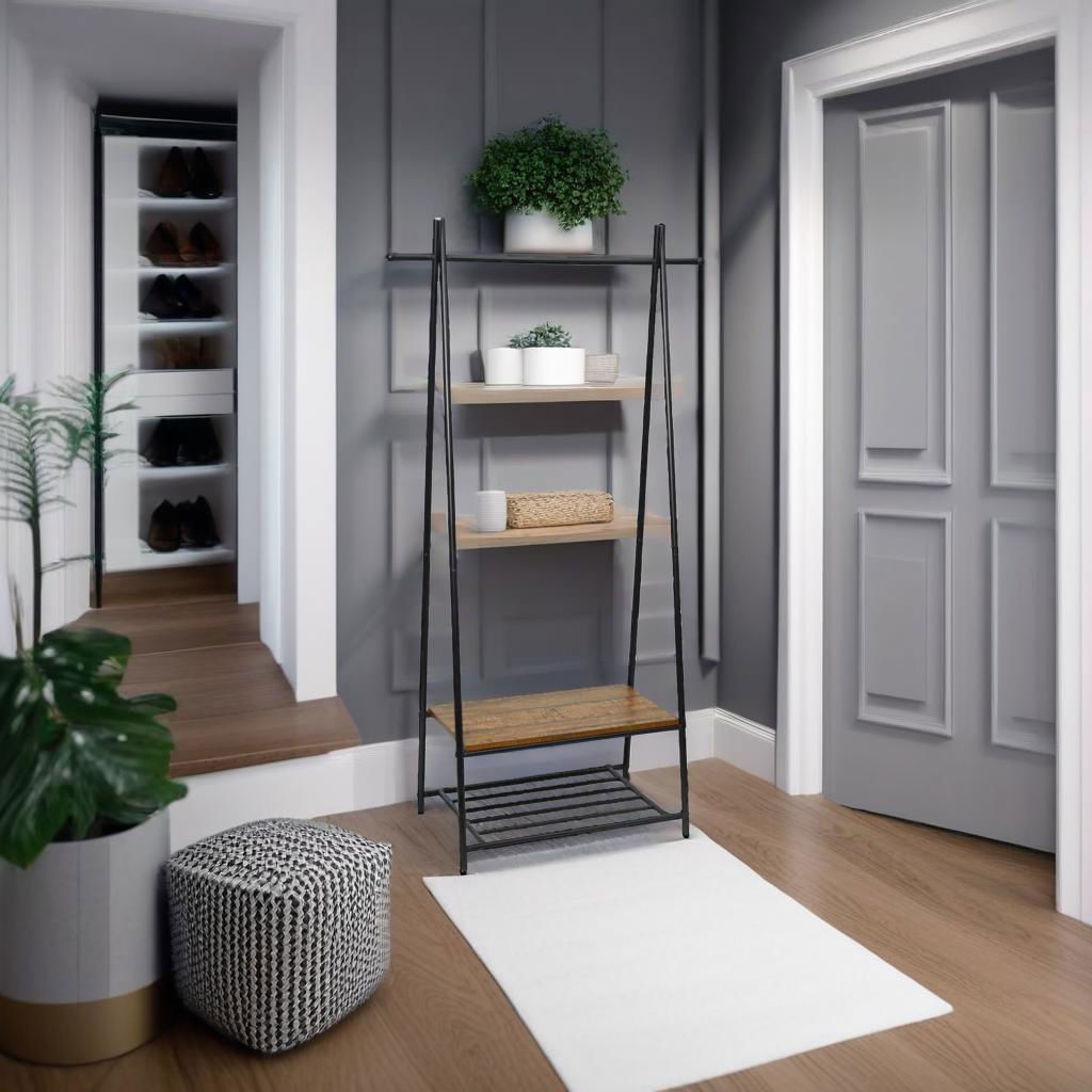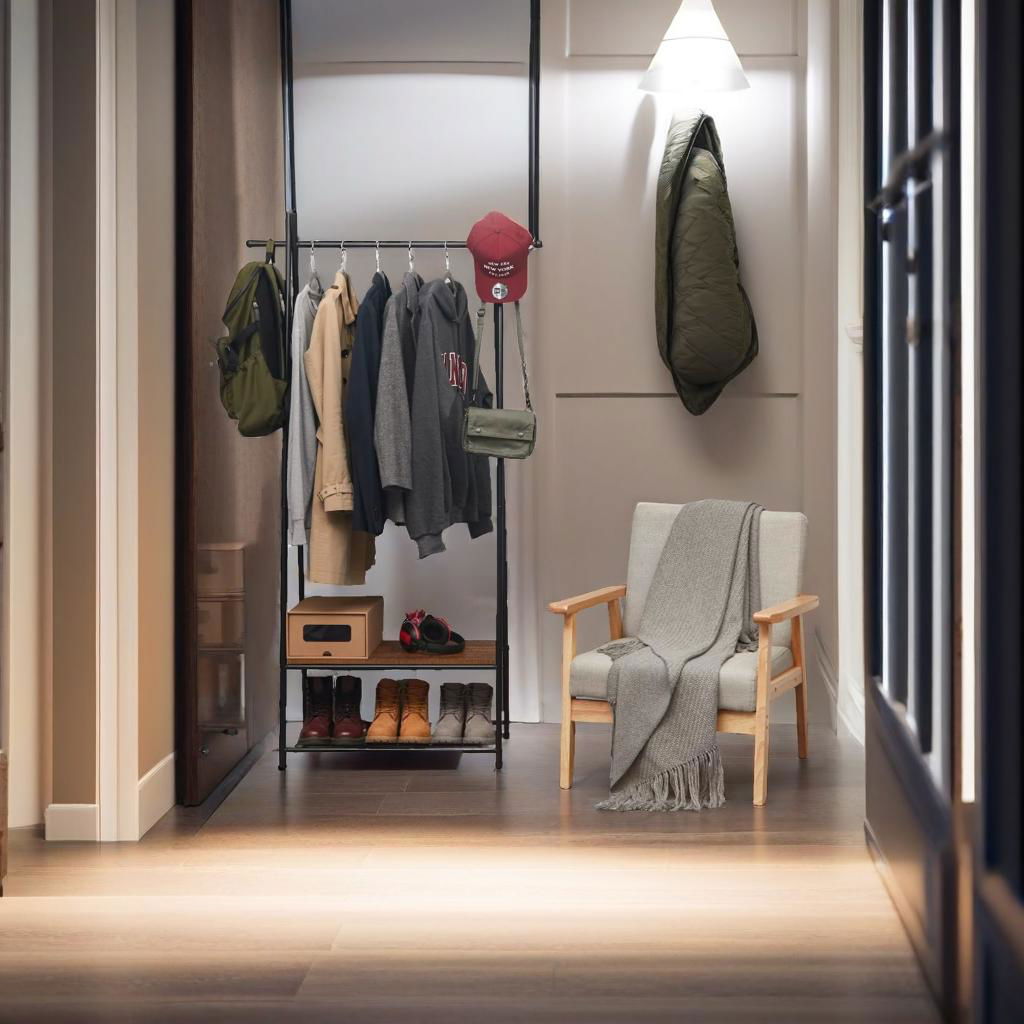 Keep your hallway tidy in style with this Vintage Industrial Coat Rack and Shoe Stand. Designed with a sturdy matte black metal frame and a dark wood grain shelf, this multifunctional organizer adds rustic charm and powerful storage to any entrance, bedroom, or living space.