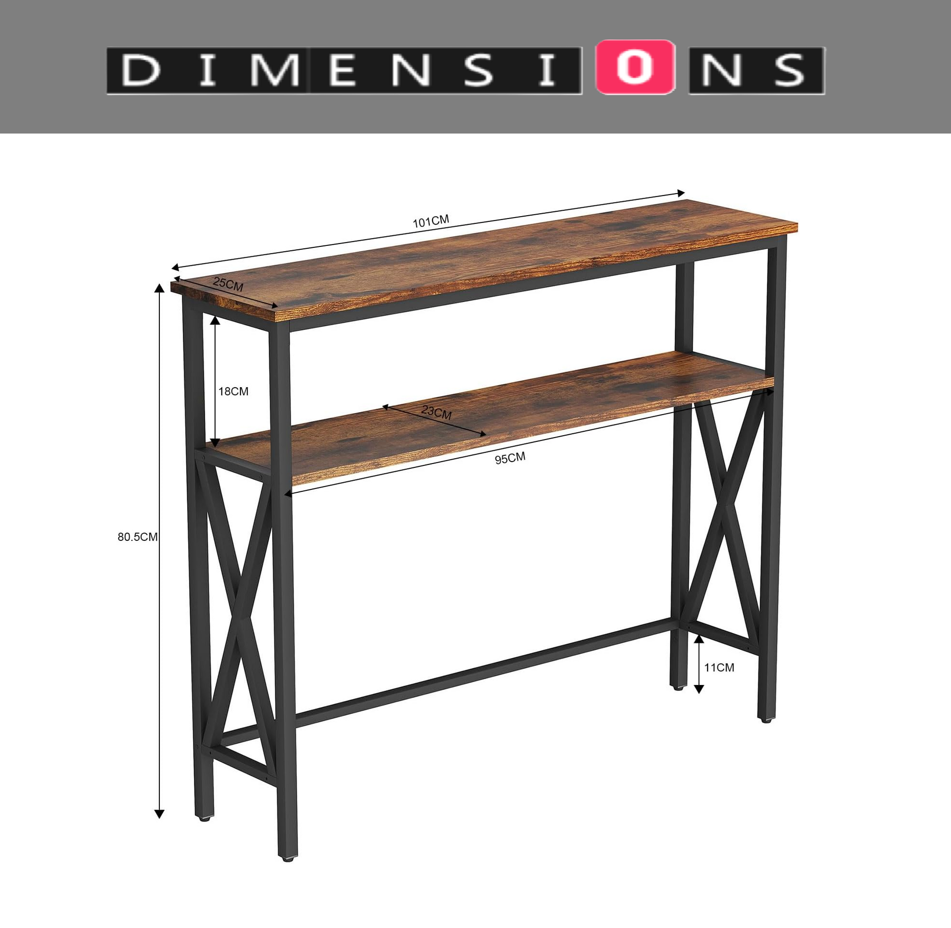 Built with user convenience in mind, this console table includes adjustable feet to ensure stability on uneven surfaces and an anti-tilt device for enhanced safety. The table is crafted with a durable engineered wooden top and a robust matte black metal frame, delivering long-lasting performance with a timeless aesthetic.