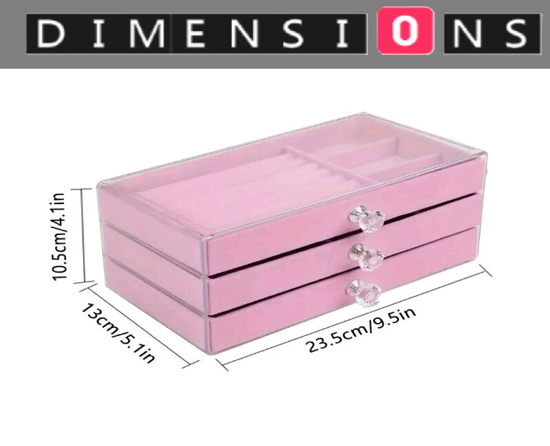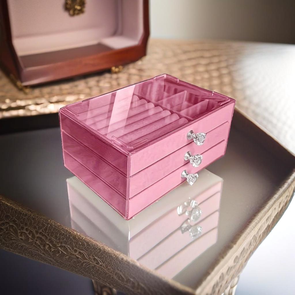 Large Pink Acrylic 3 Drawer Jewelry Storage Box Organizer for Rings Earrings Bracelets