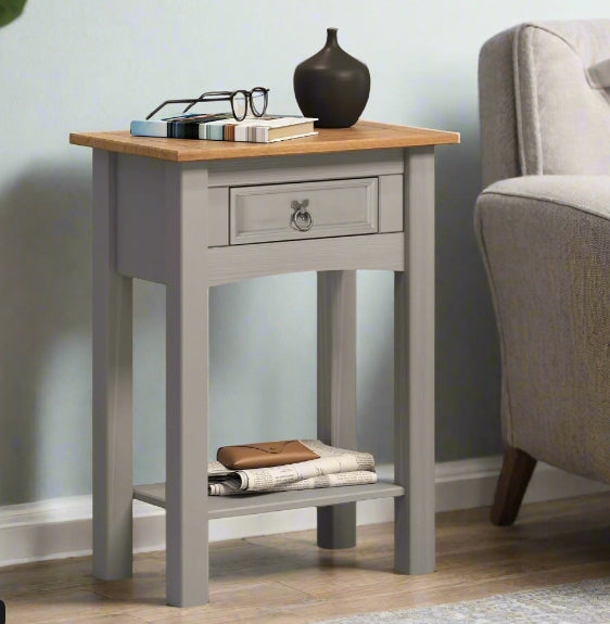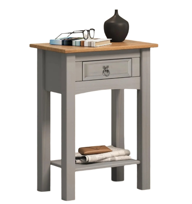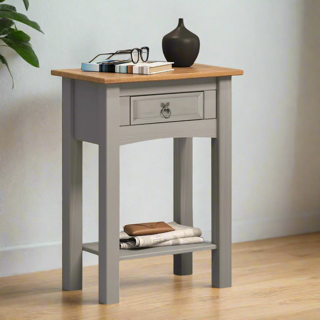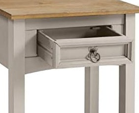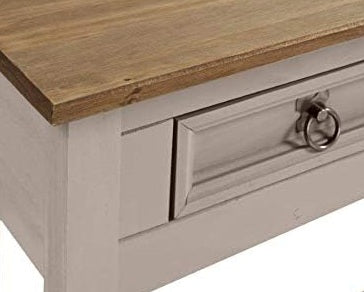 The grooved top is waxed to enhance the natural beauty of solid pine, while the subtle grey wax body allows the wood's rich grains and textures to shine through. Expertly crafted from solid pine and hand waxed, this range is designed to protect and enhance the wood's natural charm. Decorative metal fittings add a touch of distinctive Mexican styling, infusing your home with warm rustic country appeal. With solid pine construction, hardboard backboards, and drawer bases, this range offers exceptional value and timeless style.
