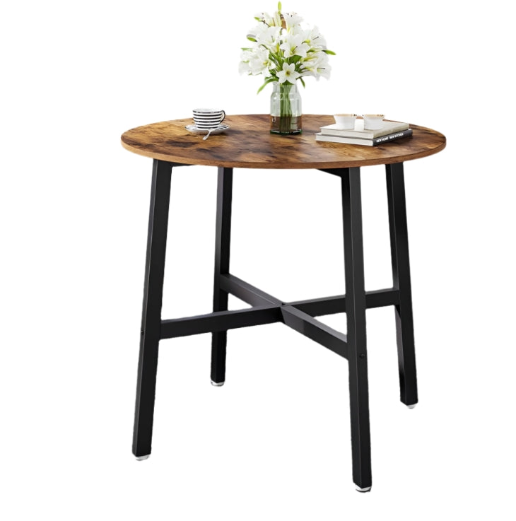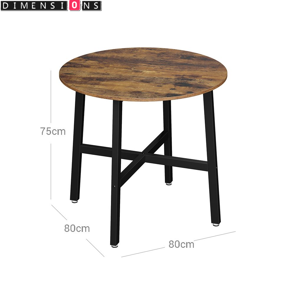 Add charm and practicality to your space with this round dining table featuring a rustic brown particleboard top and sleek black steel frame. Its minimalist industrial design complements both modern and vintage interiors.